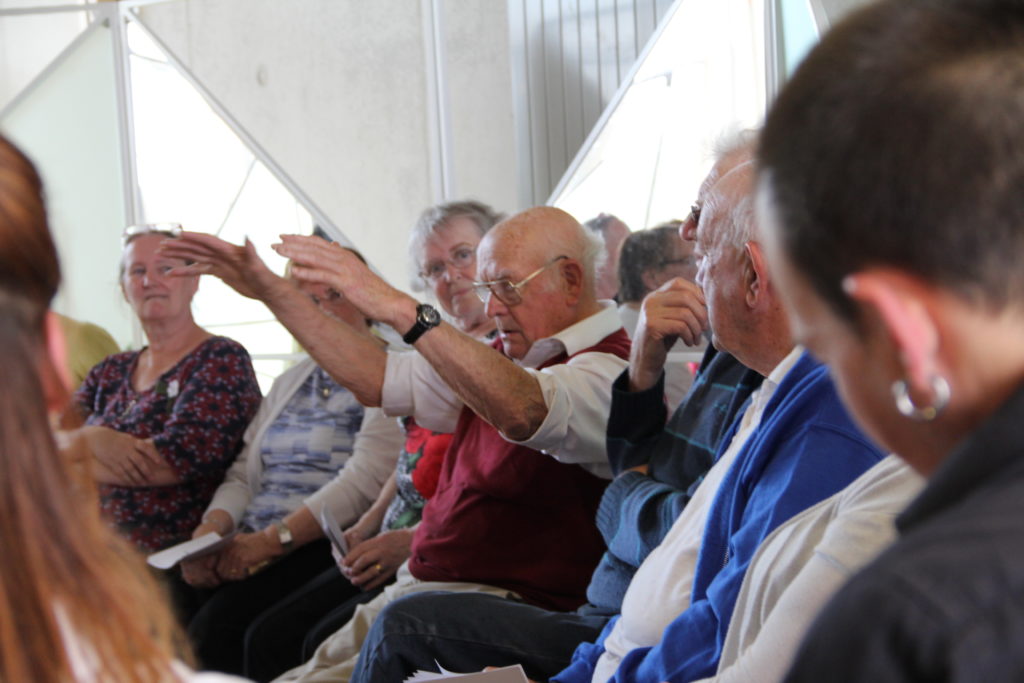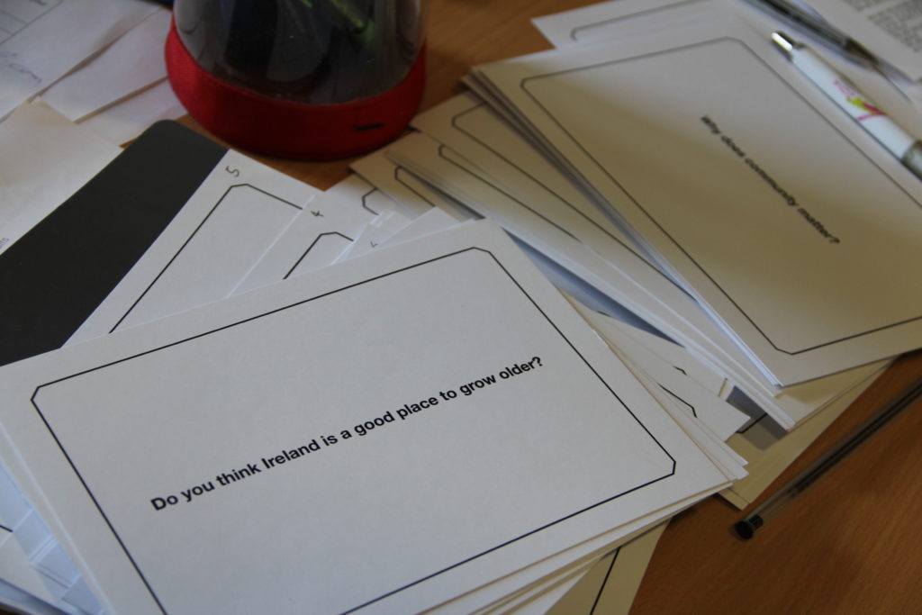 To do this, The Decorators and Joe Coveney began with a phase of carefully planned one to one conversations with twelve older citizens from around DLR. These conversations began to reveal the issues older people face in public space, how they connect to (or feel removed from) their communities, and the importance of rituals in everyday life. Based on this, phase two of the project meant the construction of the Public Age Meeting House: a mobile structure that could travel the county, occupy public spaces and frame larger conversations among citizens of all ages. The Public Age Meeting House travelled to UCD Belfield, Ballyogan, Sallynoggin and Dundrum in summer 2017, meeting with residents, students, architects, designers, politicians, community workers and others. They discussed what it means to become or feel ‘older’, they considered how public spaces work well or poorly, how public space is where difference meets and where you can (and should) discard your assumptions of others, and how crucial public space and daily rituals are to connecting with and maintaining a community. From the project there were a number of resources created, including a series of podcasts on IAF Radio and a short film by the Reelists, below.